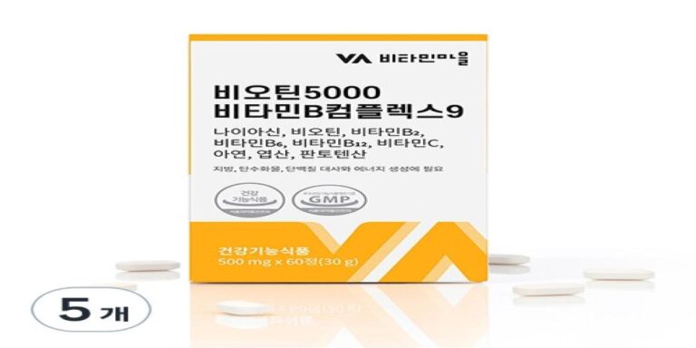 비타민마을 비오틴 5000 비타민B 컴플렉스 9 30g, 5개, 60정