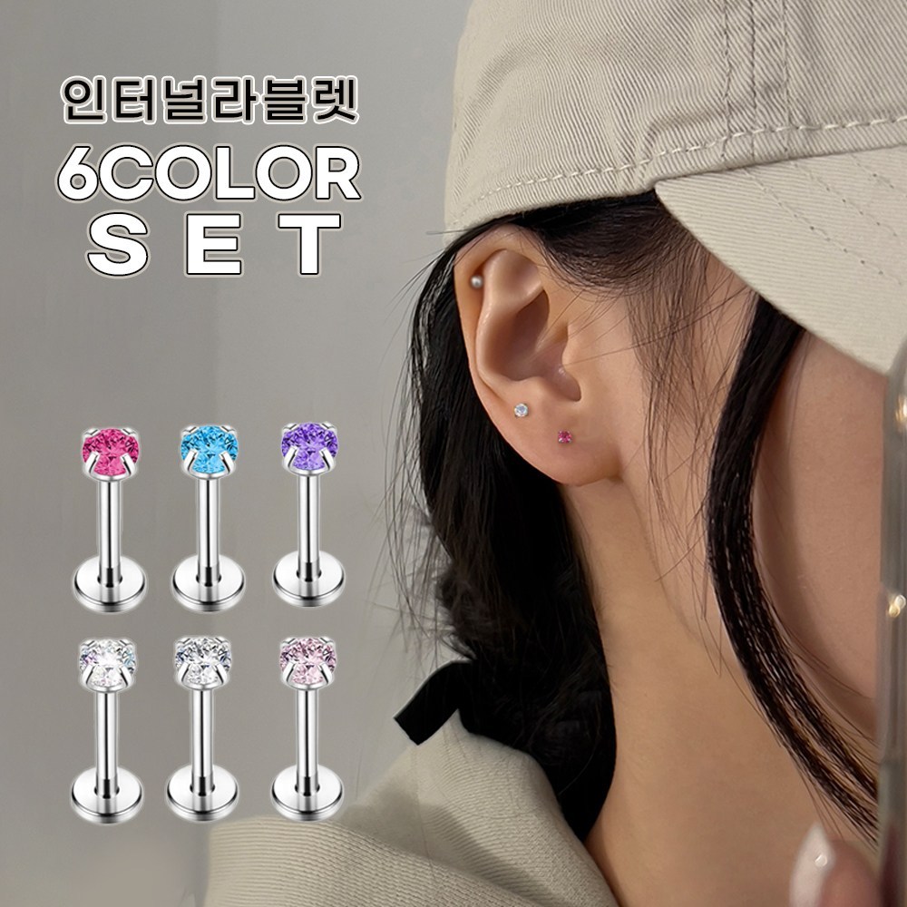 미다미 [6P세트] 미니멀 인터널라블렛 큐빅 피어싱세트