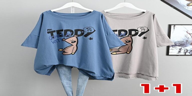 1+1 여름 빅사이즈 롱 반팔 티셔츠 여성 오버핏 캐릭터 라운드넥 티셔츠,